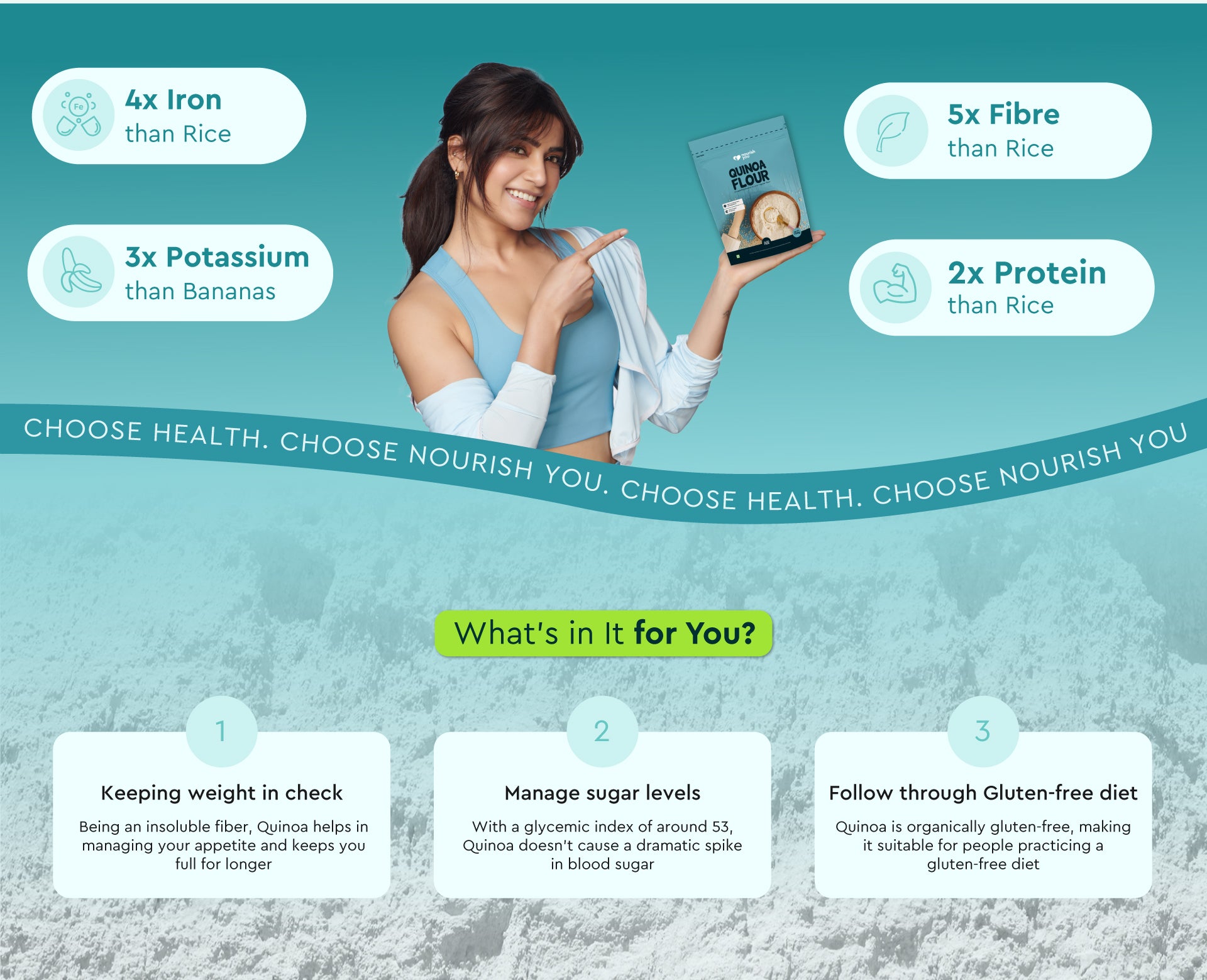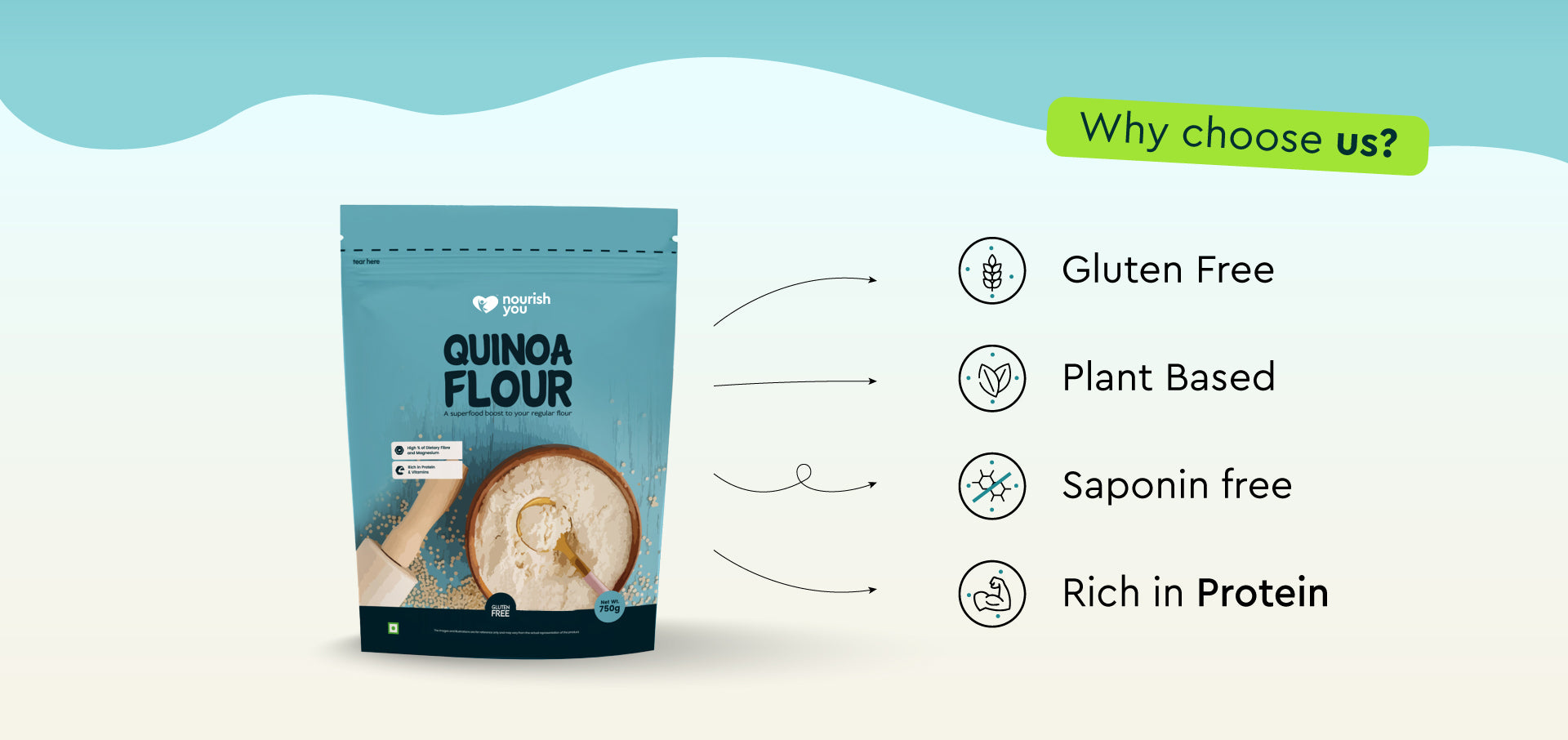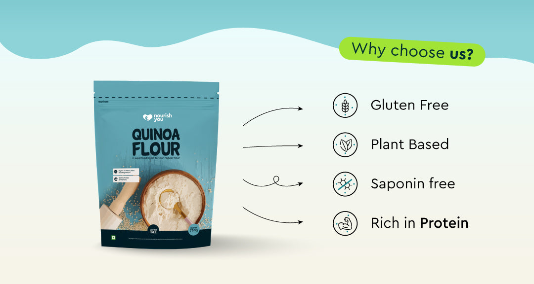 Nourish you's Quinoa flour is a protein-rich, homegrown superfood that adds exceptional nutrition to your meals. Packed with fiber, it supports digestion and keeps you feeling fuller for longer. Rich in iron, it promotes healthy blood flow, while its high magnesium content supports muscle and nerve function. This versatile, nutrient-dense flour is perfect for gluten-free baking and cooking, making it a wholesome addition to a balanced, health-focused diet.