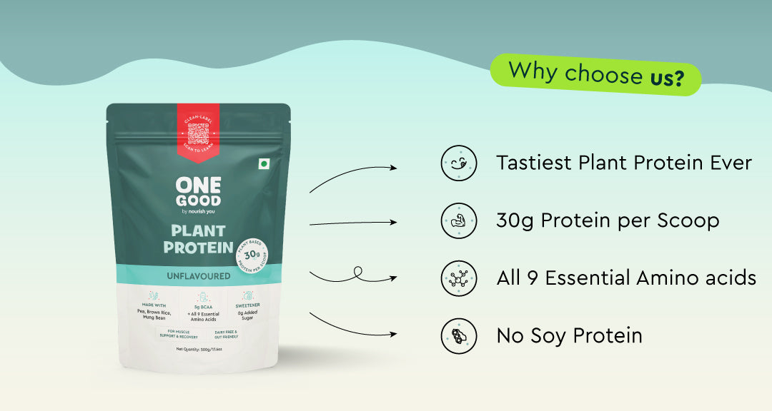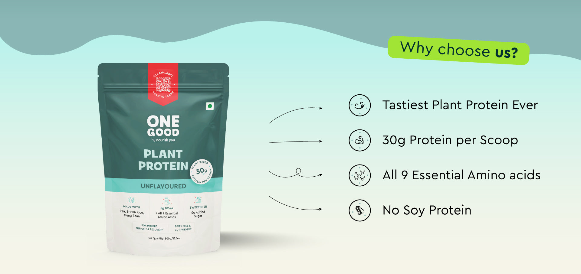 Meet your cleanest scoop of protein yet. One Good Plant Protein – Unflavoured delivers a solid 30g of complete plant-based protein per scoop, made from Pea Protein Isolate, Brown Rice Protein Isolate, and Mung Bean Protein Concentrate. With all 9 essential amino acids, zero added sugar, and absolutely no artificial ingredients, it’s smooth, gut-friendly, soy-free, and dairy-free. Clean, versatile, and built for recovery.