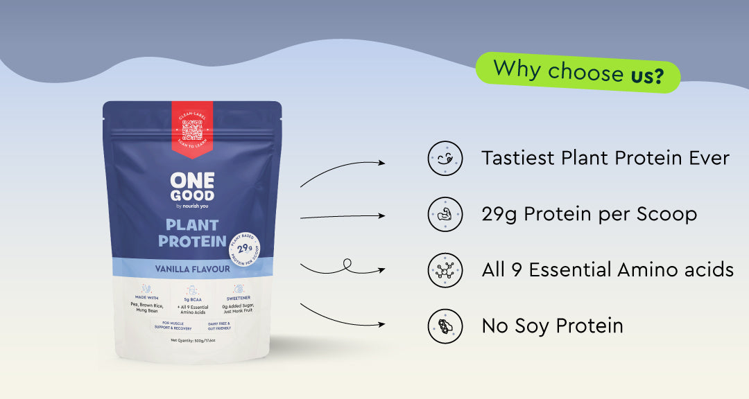 Meet your cleanest scoop of protein yet. One Good Plant Protein – Vanilla delivers a powerful 29g of complete plant-based protein per scoop, made from Pea Protein Isolate, Brown Rice Protein Isolate, and Mung Bean Protein Concentrate. With all 9 essential amino acids, 0g added sugar, and natural monk fruit sweetness, it’s smooth, gut-friendly, soy-free, and dairy-free. Clean, delicious, and made for recovery.