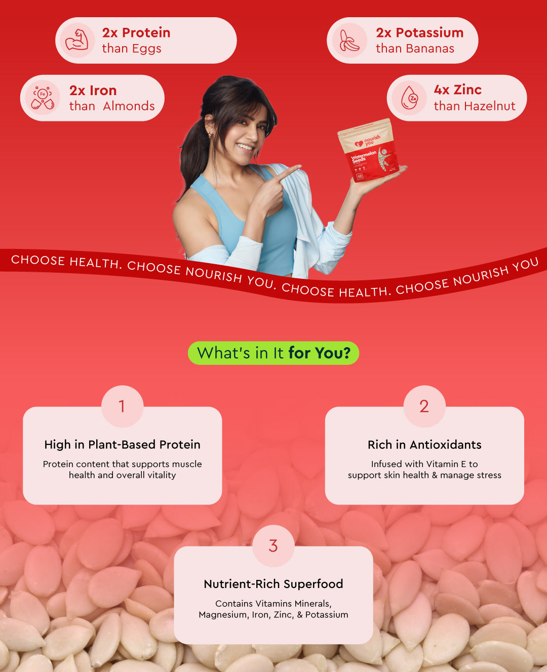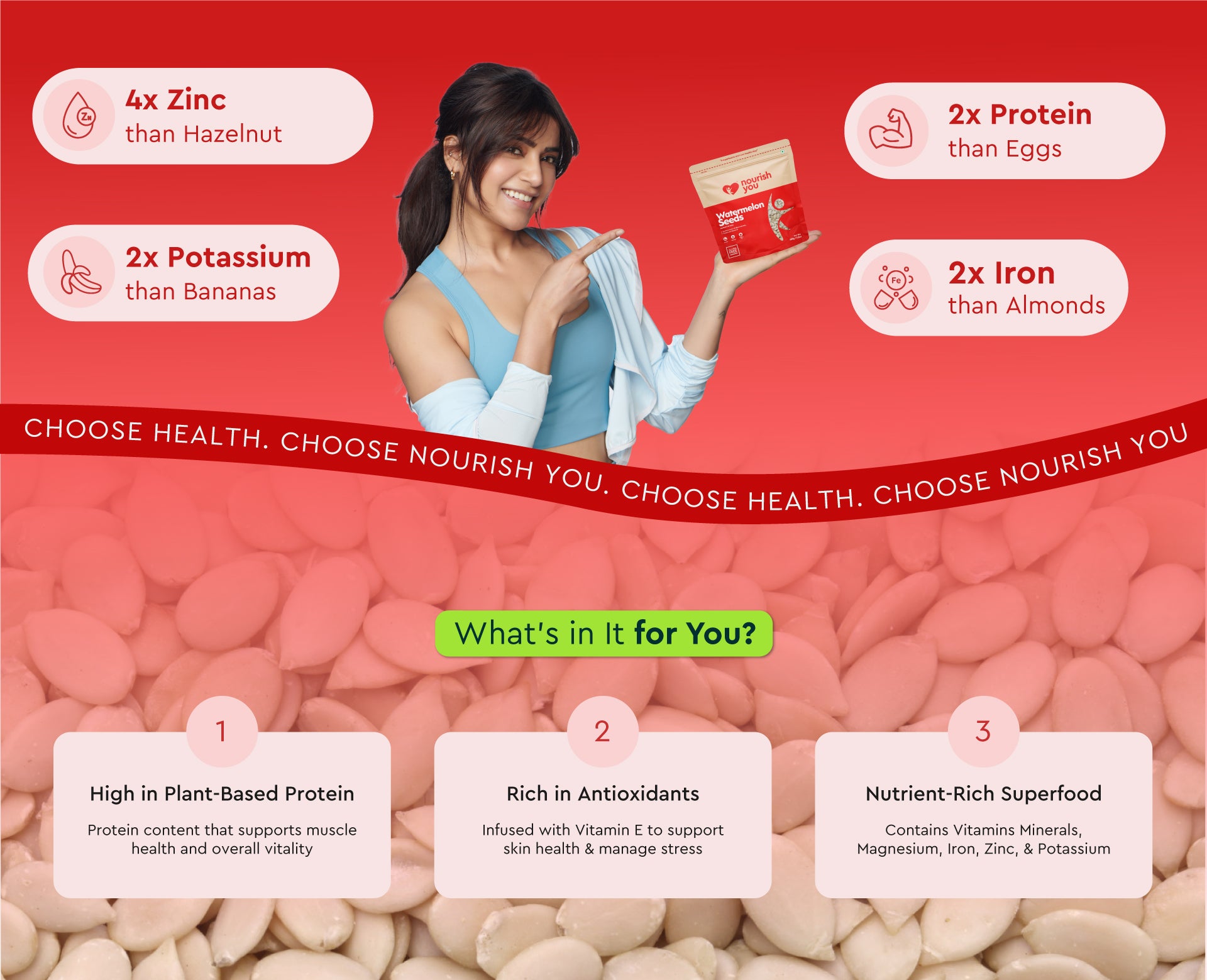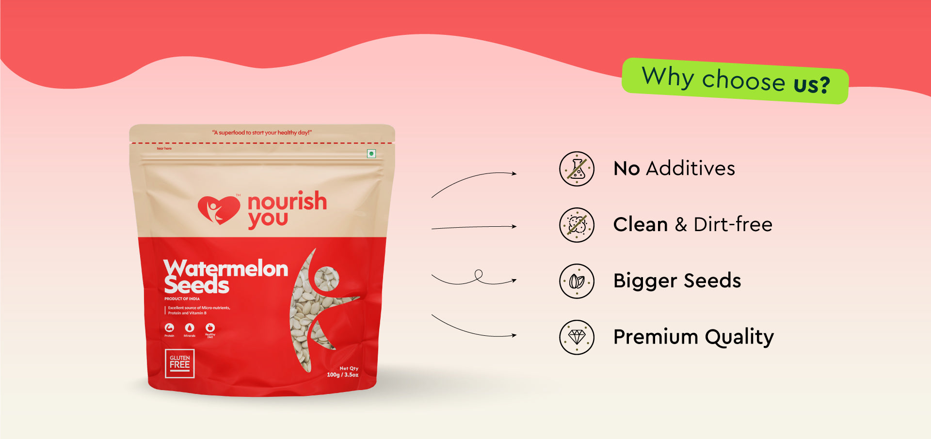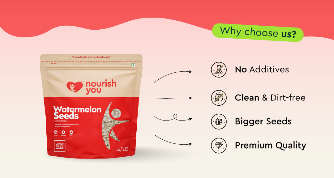 Nourish You's Watermelon Seeds are healthy, nutrient-packed seeds that offer impressive benefits. High in protein, they support muscle growth and repair while providing essential building blocks for the body. Rich in antioxidants, these seeds help combat free radicals and promote overall wellness. Free of GMOs, watermelon seeds are a natural, wholesome choice for conscious eaters. Enjoy them roasted or added to recipes for a delicious, nutrient-rich snack that's as beneficial as it is tasty!